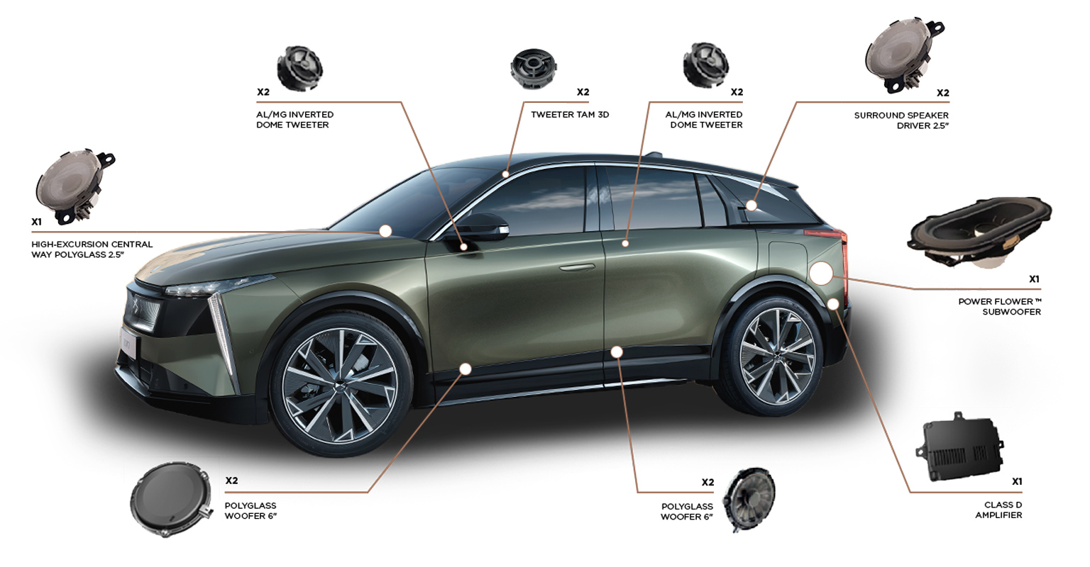 在 DS N°8 上首次推出Electra 3D by Focal系统之后,Focal 现将其名字正式冠于 DS N°7 的沉浸式音响系统之上。DS N°7 是一款新一代高端 SUV。